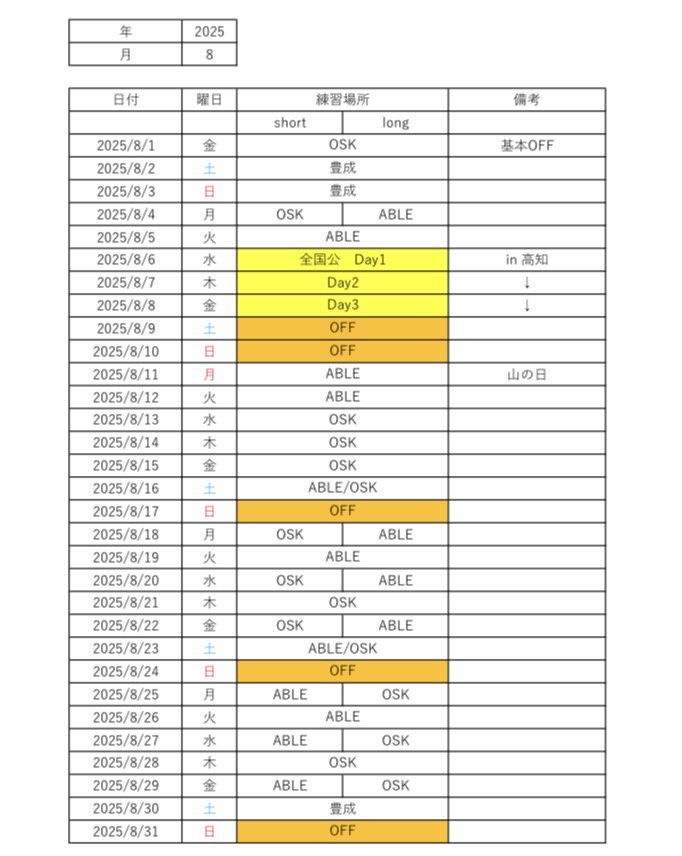8/1 8月予定表を更新しました。