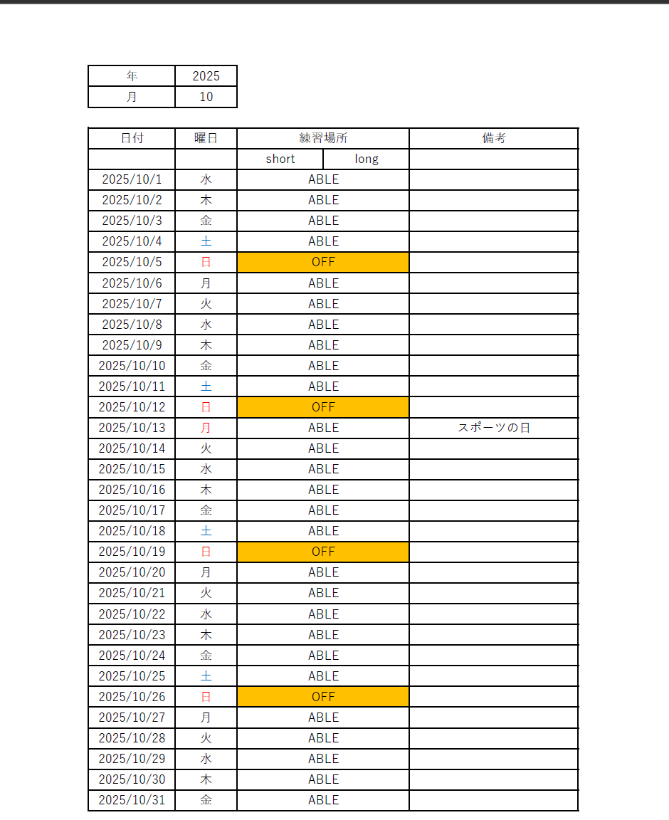 10/21 10月予定表を更新しました。