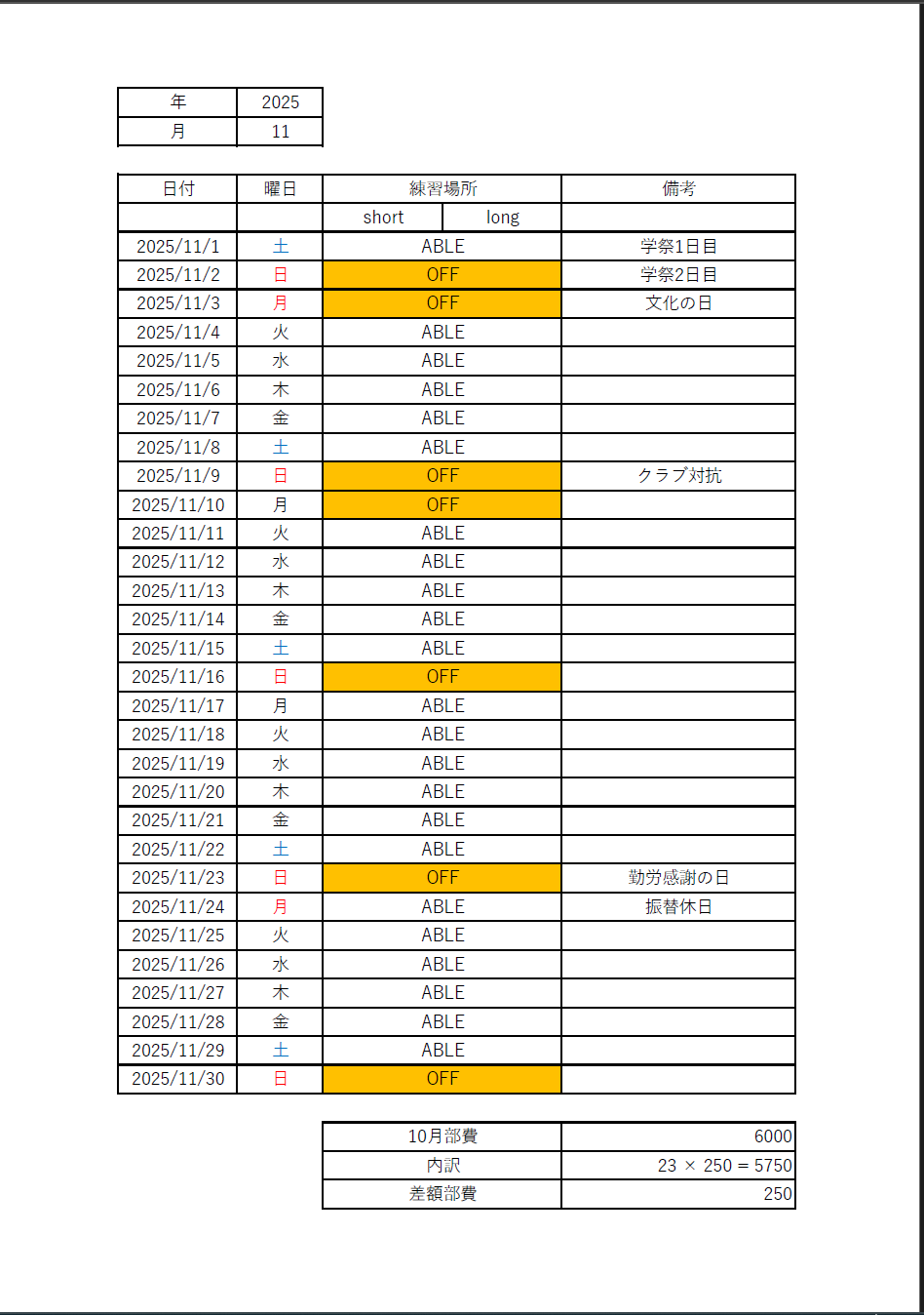 10/30 11月予定表を更新しました。
